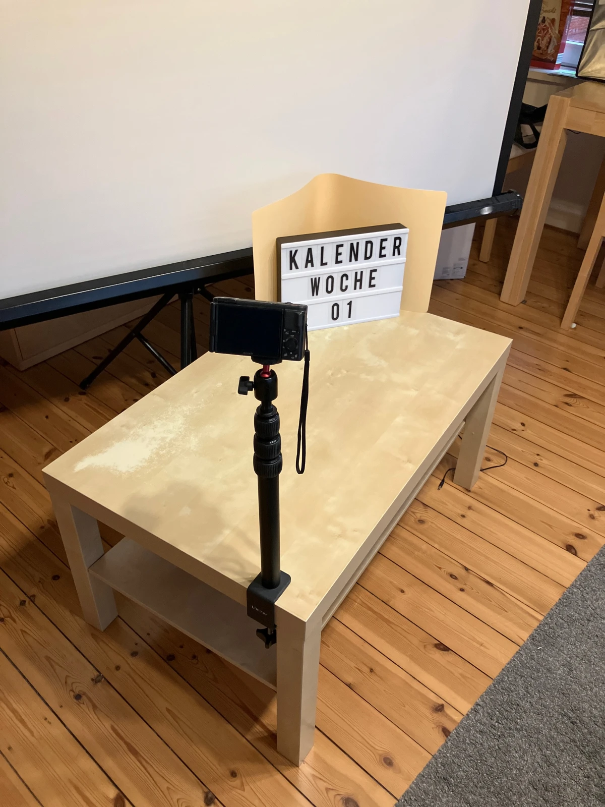 Maurice und ich bereiten Fotos als Kalenderwochen Hero Image Vorlagen vor, die später über eine Bilder-KI angepasst werden, sodass sie zum jeweiligen Blogpost passen. Dies passiert mit Verwendung einer Light Box in hochprofessionellen Aufbau 🤓